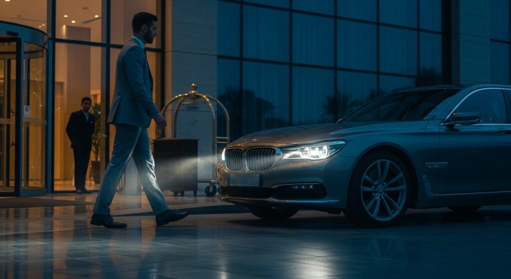Inside a chauffeur-driven vehicle, the world slows down: quiet interiors, cool air, and a sense of privacy that allows you to gather thoughts before the next meeting.